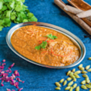 luzowany kurczak złagodzony papryką, cebulą i pomidorami. Ugotowany w żółtym sosie wykończonym białkiem, usmażonym papad i orzechem nerkowca